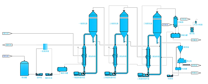 設(shè)備通過(guò)加熱,產(chǎn)生的蒸汽引入后面的蒸發(fā)器。正常情況下,市場(chǎng)上用的比較多的是2-6個(gè)蒸發(fā)器,再多的話,會(huì)增加設(shè)備的運(yùn)營(yíng)成本。